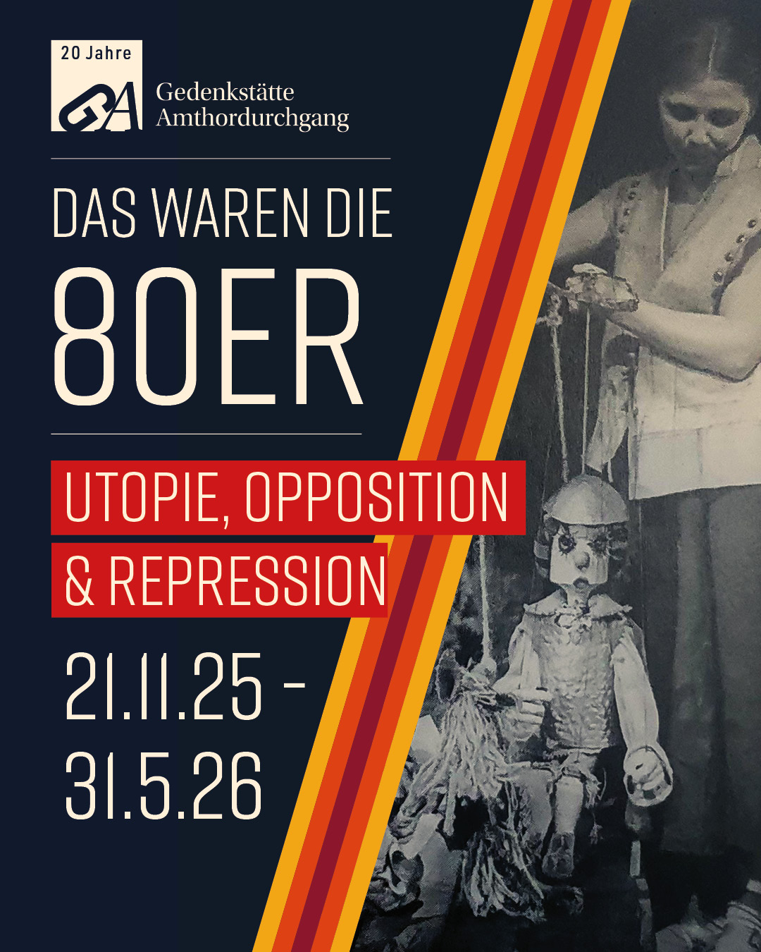 Am 18. November 2025 feiert die Gedenkstätte Amthordurchgang ihr 20. Gedenkstättenjubiläum. Es gibt ein vielfältiges Veranstaltungsprogramm rund um dieses Datum. Den krönenden Abschluss des Jubiläumsjahres bildet die Eröffnung unserer Sonderausstellung „Das waren die 80er“ , welche zusammen mit dem Stadtmuseum Gera umgesetzt wird.